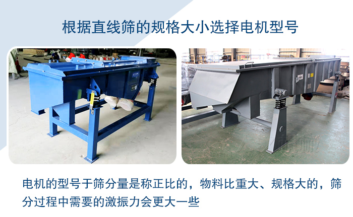 2,根據(jù)直線篩的規(guī)格大小選擇電機型號