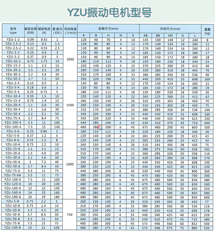 產品描述 :YZU振動電機的概述: YZU振動電機激振力能在一定范圍內非常容易地進行有級調節,滿足各種作業需求。使用新型密封技術及進口密封件,大大提高了立式振動電機的防塵防潮能力,產品