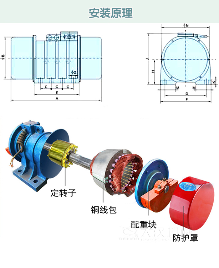 1、激振動力與功率配合得當,振動力大,機體重量輕,體積小,機械噪音低。