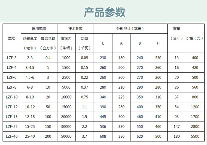 6、振打力的傳遞范圍一般為4~5m,用戶可根據料倉的大小,確定整個料倉應按裝的臺數。
